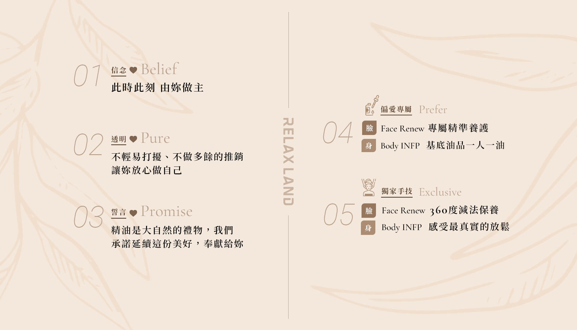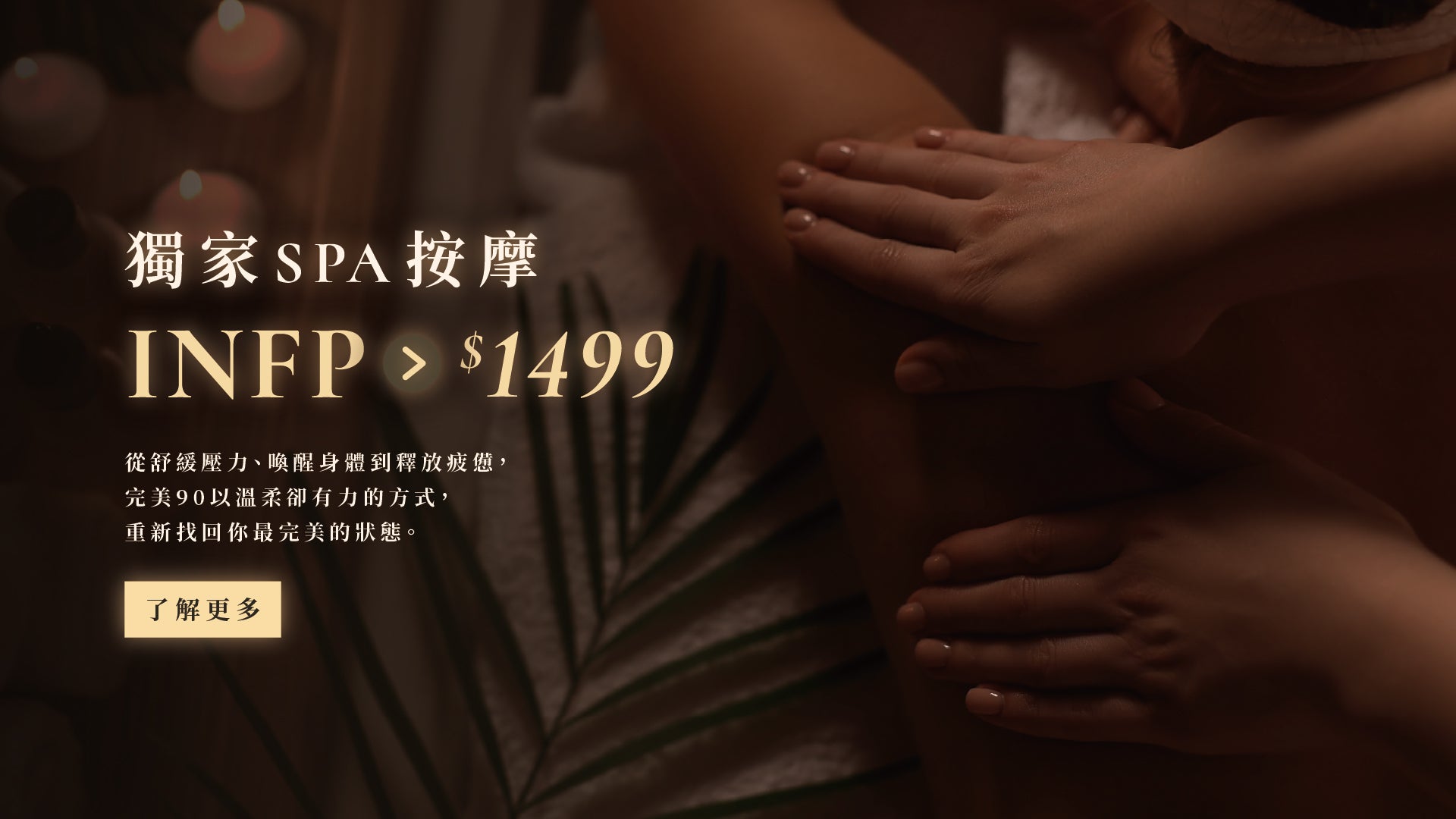 我們引以為傲的是完美的90分鐘體驗,SPA放鬆的最佳時間。選擇剛剛好的時間軸,勾勒出紓壓的餘韻