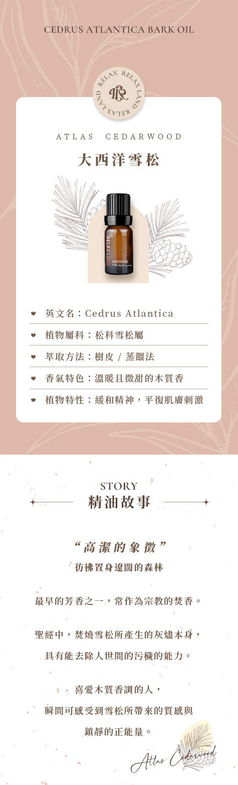 有著溫暖的木質香氣,能幫助我們減緩肌膚的刺激,也很適合冥想時沉靜心靈